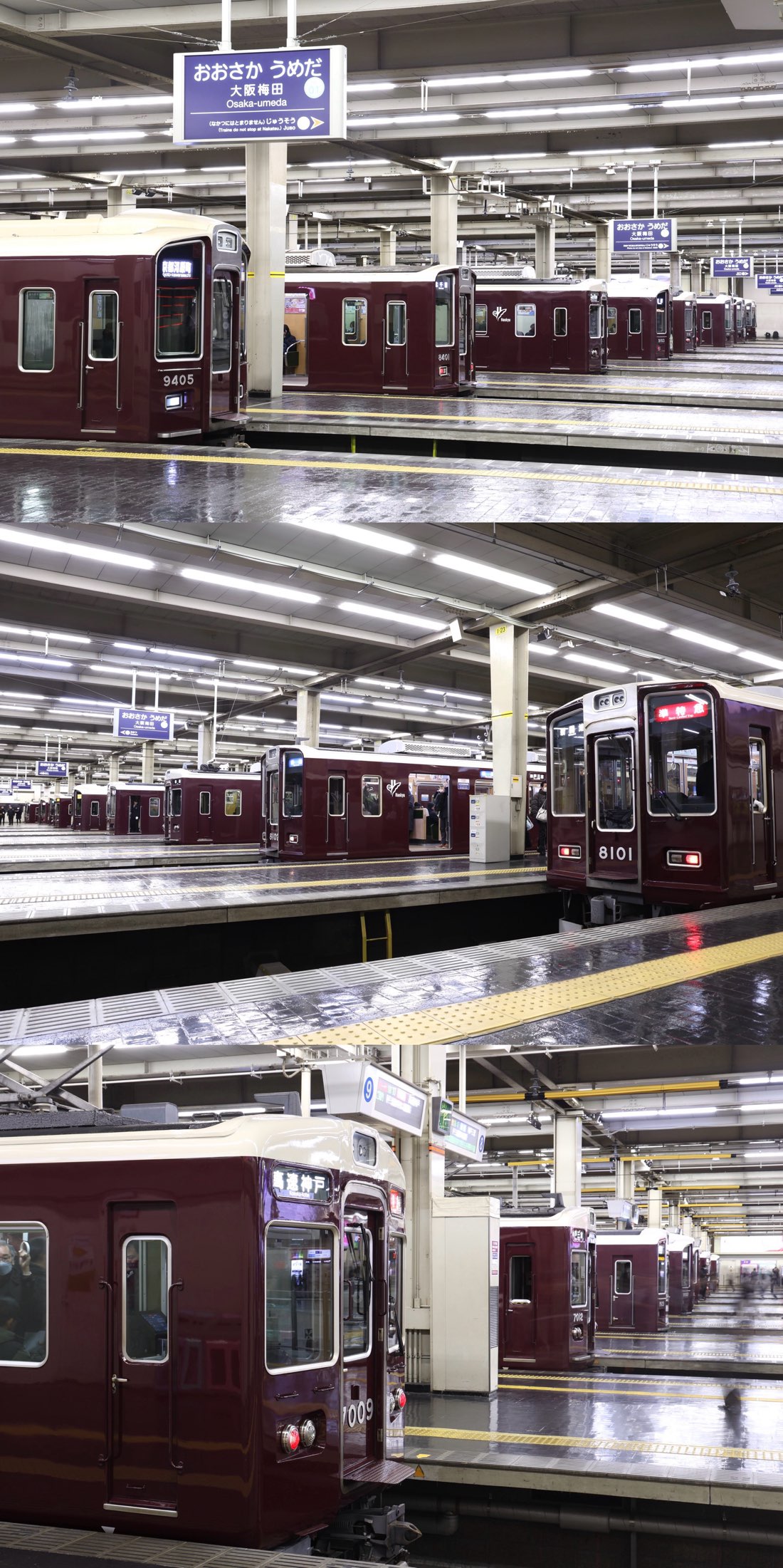 昨年10月撮影の阪急8000系8005編成です。この編成の宝塚方2両は転換クロスシート車ですが、更新でロングシート化が進み宝塚線では最後の1編成となりました。現在正雀では8300系の嵐山線ワンマン化改造が進むなど空きに余裕が無いようですが、神戸線の8002編成と共にいつ入場してもおかしくないと思うので今後に注目ですね。